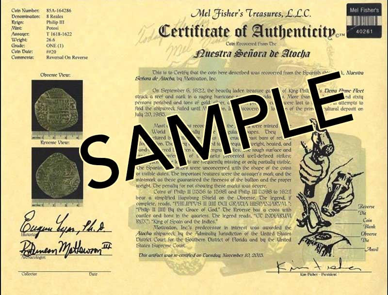 (At this time we are only providing authentication for Mel Fisher's Treasures members only.)