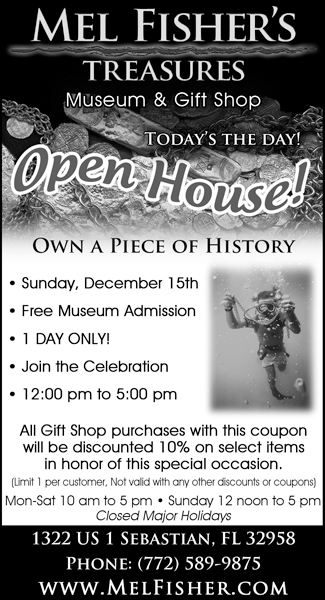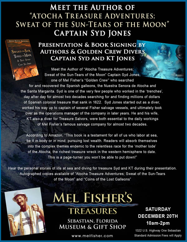 1:00 PM - 4:00 PM -"Treasure Talks" at the Mel Fisher Treasure Museum, 1322 U.S. Highway 1, Sebastian, Florida.