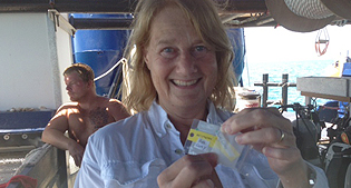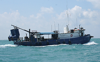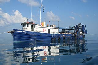The Dare and her crew had a very productive initial trip to the Lost Merchant search area with over 100 linear miles being covered with side scan sonar and magnetometers. According to Gary Randolph, Vice President and Director of Operations, the new navigation computer and autopilot software, which is now integrated with a high accuracy Trimble GPS receiver, worked extremely well allowing the crew to work in rougher conditions. There were a few low priority side-scan targets but no medium or high priority targets as of yet.
