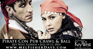 Nearly 100 pirates in the Pirate Pub Crawl and Ball raised a mug with a yo ho ho and a bottle of rum, Papa’s Pilar Rum to be specific, as they meandered from Turtle Kraals to Half Shell Raw Bar, then down the plank to Schooner Wharf Bar, Island Dogs and fittingly ended at The Rum Barrel; all of which were sponsors of the events along with Key West Promotions who ran the Pub Crawl.