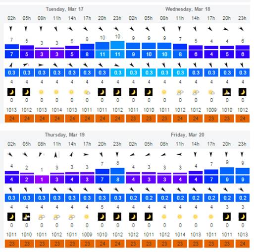 The weather is too rough for the next two days but looks good starting Friday. According to Kim Fisher, the weather report looks favorable for several days and we hope we will find the wreck then!