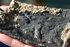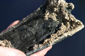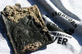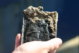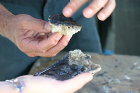 Captain Andy shows more of the gold wash that is attached to the encrustation.