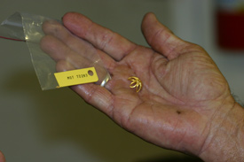 recovered by Diver Chris Rackley. The ornate gold floweret was likely a part of a rosary.