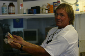 Capt. Glen Jackson brings the newly recovered artifacts into the lab for check