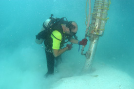 Mel Fisher Crewmember using the airlift to excavate at Emerald City.