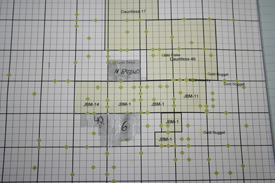 Visual of the grid used to map out areas worked and emeralds found.