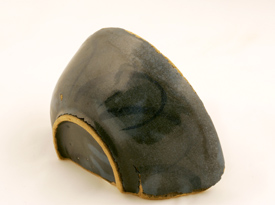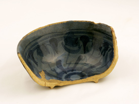 Conservation of this type of glazed pottery is different than process used with the more basic pottery. The more basic pottery can be placed in fresh water that is changed periodically to remove the chlorides from the artifact. Glazed pottery, conversely, must be slowly introduced into a gradually less concentrated saltwater mixture. It begins at a 90% saltwater, 10% freshwater mixture and steps down in 10% increments going to 80% saltwater, then 70% etc. until it is in pure fresh water and the conservation process is complete.