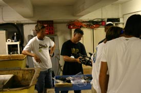 Gary and the "Blue Water Rose" crew going over artifact handling procedures.