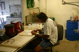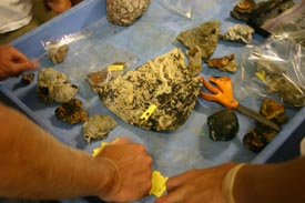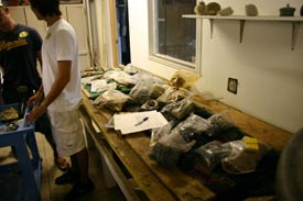 "Blue Water Rose" crew learning how to check in artifacts in the lab.