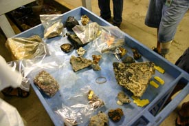 last week with about eight large buckets filled with artifacts from the site. Along with
