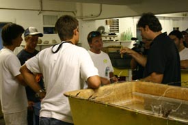 Keith Webb, owner of BWV and friend Manny the "shark guy" watching all the action.